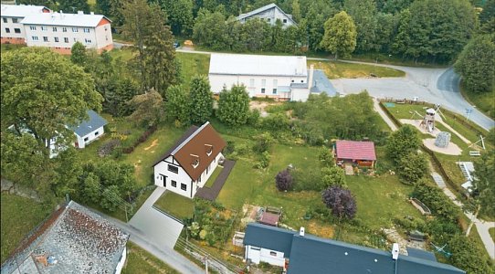 Strategické umístění pozemku ve středu obce je nejvýhodnější hned z několika důvodů - snadný příjezd až k nemovitosti, kousek máte obchod, občerstvení i dětské hřiště a také zastávku. Velké parkoviště je hned naproti. Zastávka autobusu je opět naproti domu, takže vy nebo vaši hosté ani nepotřebují auto. Všechno jak na dlani.