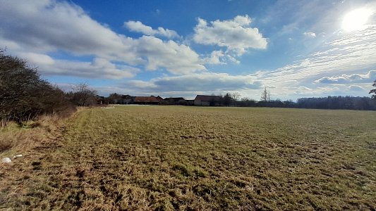 K pozemku vede zpevněná částečně štěrková/asfaltová komunikace, která zajišťuje snadný přístup. Sítě jsou ve vzdálenosti 50 metrů od pozemku pro budoucí napojení na inženýrské sítě. Na pozemku se nachází několik vzrostlých borovic na severní straně, ořech a rakytník, které dodávají prostoru příjemnou atmosféru. Pozemek je otevřen jihozápadním směrem, to zajistí dostatek slunečního světla po celý den.